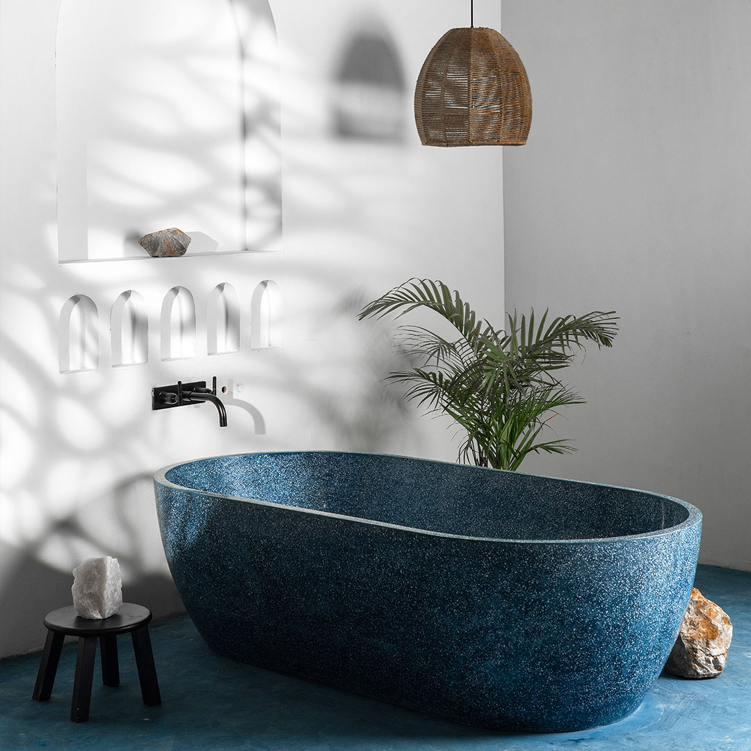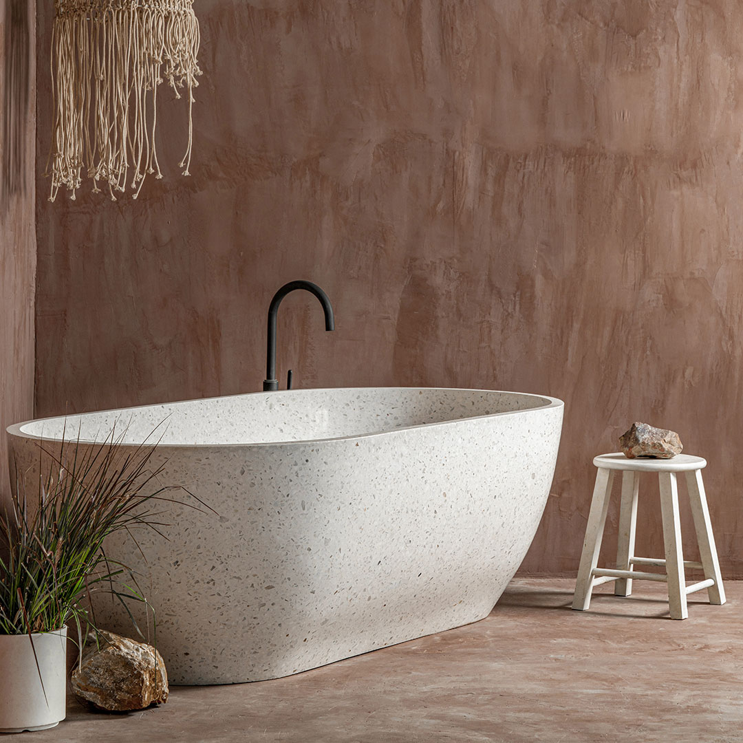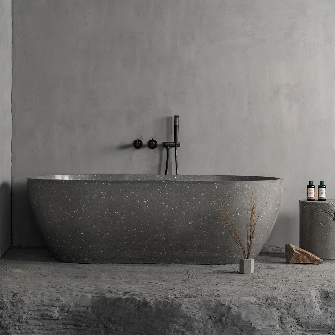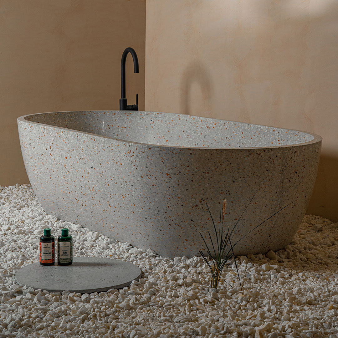 Shell Fascinating and artistic stand alone bathtub available in custom made terrazzo and concrete finishes